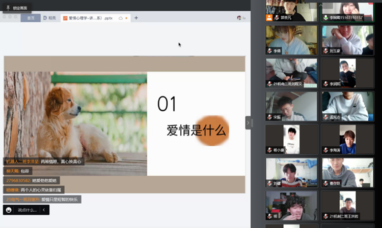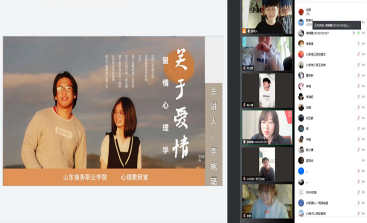 本次线上活动在积极推动疫情防控下大学生心理情绪调解中发挥了促进作用。恋爱作为大学生群体中的一种普遍现象,应保持坦然地心态面对可能出现的恋爱问题,注重心理调适,并妥善处理恋爱与个人发展之间的关系。爱情是一把双刃剑,希望同学们可以在恋爱中对于激情和理性间有自己的考虑,相信通过这次爱情讲座的开展,对学生树立正确的恋爱观念,调整恋爱中的心理情绪,增强大学生的自我保护意识起到重要的作用。(撰稿:李婉璐 审核:姜强 杨宁 )