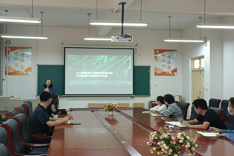普查工作结束后,进入测后访谈工作阶段。9月28日,思政部心理教研室组织开展一对一学院辅导员谈心谈话技术交流培训会,就心理普查数据、谈心谈话流程、内容及注意事项进行交流分享。确保辅导员在访谈中能够准确了解和把握学生的具体情况,实现“一人一档”及动态管理,做好对重点关注的学生定期跟进,对心理危机人群及时干预,做到及早预防、及时疏导、快速干预、有效控制,避免极端事件的发生。