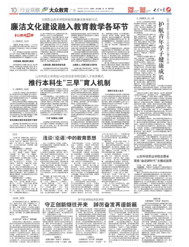 以融合式方法提升心理育人整体性。该校将心理教育融入新媒体网络平台,通过微信公众号、心理健康直播课、“5·25”心理健康节,拓宽心理育人的渠道,促进心理育人在学校的全覆盖。在学校官方微信公众号和各二级学院微信公众号设置心理教育专栏,定期推送心理健康知识和心理调适方法,并通过学校表白墙、主题班会、宣传栏等渠道营造良好的育人氛围。以班级、宿舍为单位成立朋辈心理互助小组,强化朋辈心理健康互助意识,促进朋辈之间的互助、自助能力,形成较为完备的学生心理朋辈互助体系,做到学生在哪,心理服务就在哪。做好“5·25”心理健康节活动,集思广益,在全校范围内开展活动形式征集,吸引学生的关注,丰富学生在校生活。近两年学校积极参与山东省心理健康节活动,获得1项省级特色荣誉奖、2项微课大赛奖项、3项心理活动奖项。