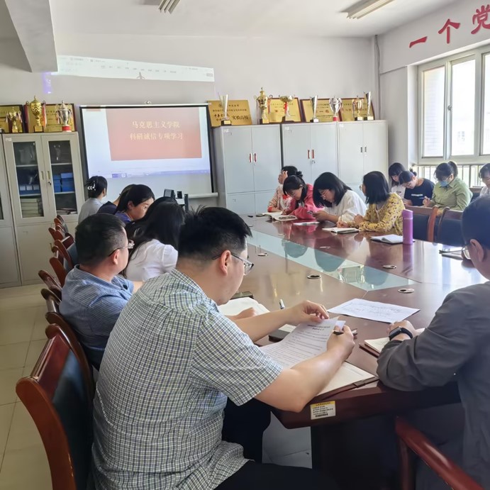为进一步加强科研诚信建设,营造风清气正的科研环境,5月28日下午,马克思主义学院召开科研诚信专题学习会。