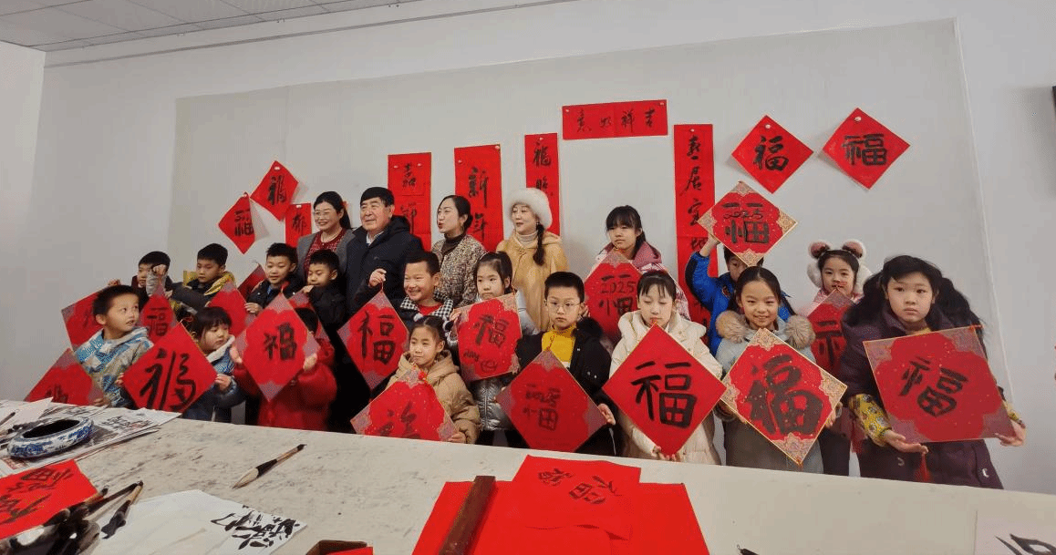 本次活动旨在传承和弘扬中华优秀传统文化,丰富群众的精神文化生活,让大家感受书法的艺术魅力,为烟台美育工作贡献力量。活动邀请了烟台大学原党委副书记、中国高教学会美育专业委员会副会长、烟台大学美育研究所所长、著名教育家和书画家于文书为大家进行书法授课,与家长和孩子们一起开启书法艺术的体验之旅。在书法体验活动中,于文书为大家讲解了春联及福字的来历、演变过程及文化含义;示范如何选择适合的内容及运用不同的字体和布局来增强春联的美感;现场为大家书写春联及福字。在互动实践环节,孩子们踊跃参与福字撰写活动,亲身感受汉字的魅力,体会到了书法艺术的灵动隽永与变化万千,增强了对中华优秀传统文化的认同感与自豪感。