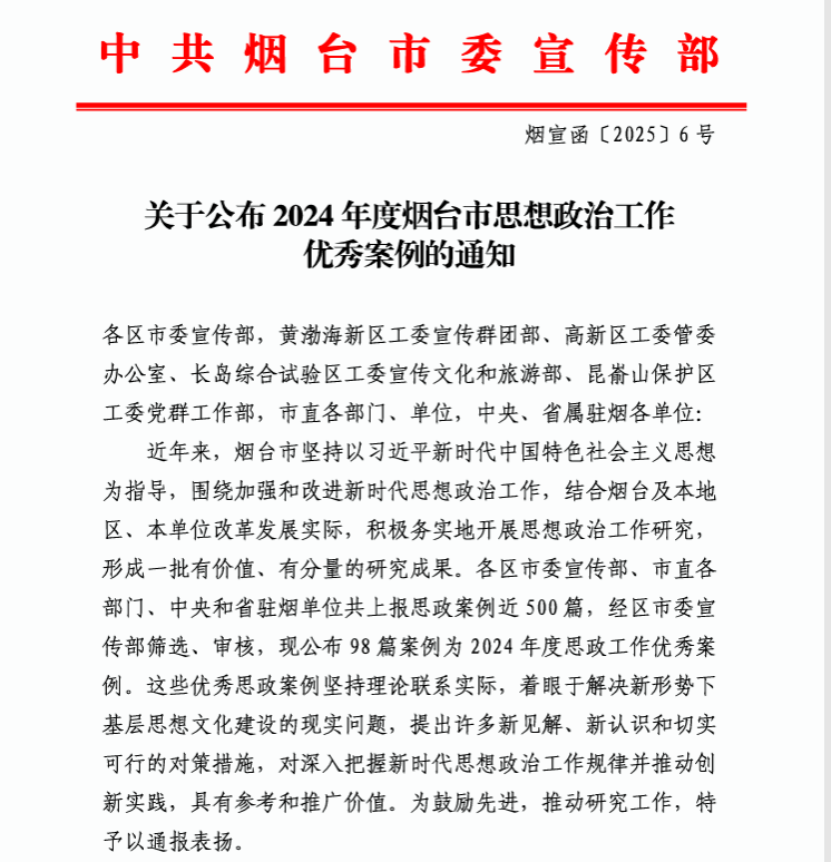 我校思政案例入选2024年度烟台市思想政治工作优秀案例