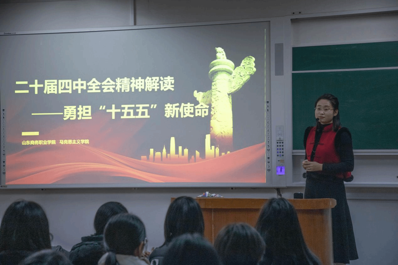 为深入推动党的二十届四中全会精神进校园、进课堂、进学生头脑,切实将全会精神转化为青年学生成长成才的思想动力与行动自觉。近日,我校马克思主义学院组织开展了党的二十届四中全会精神进课堂专题教学活动。