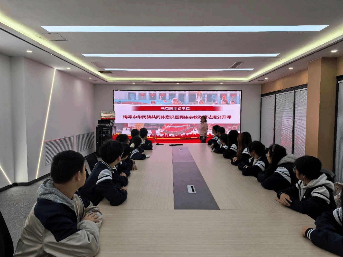 为深入学习贯彻民族宗教政策法规,铸牢中华民族共同体意识入脑入心。11月20日,马克思主义学院开展“铸牢中华民族共同体意识暨民族宗教政策法规公开课”。课程以生动的影像资料和深入的政策解读,引领我校学子感受法治力量对民族团结的坚实保障,理解铸牢中华民族共同体意识的深刻内涵。