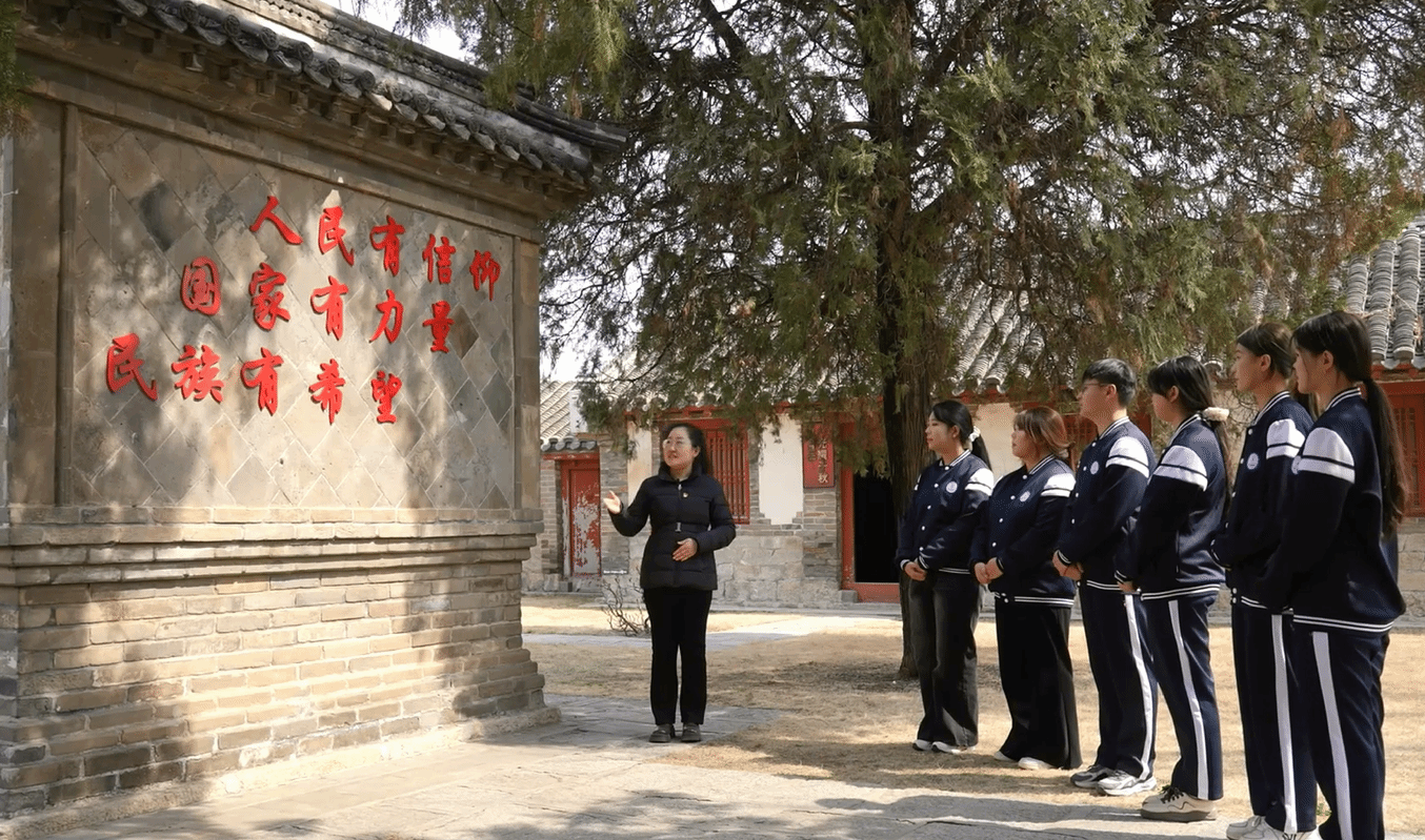 活动中,教师以实景课堂为载体,带领同学们重温1938年“胶东抗战第一枪”的战斗历程,聚焦22位英雄血战8小时的英勇事迹,围绕那块0.8平方米、布满138个弹孔的马口铁雨搭板展开讲解,让抽象的概念变得可触可感、入脑入心。活动紧扣红色历史与总体国家安全观,通过文物解读、英雄群像剖析、互动感悟、集体宣誓等环节,引导学生深刻领会“坚韧、智慧、为民”的雷神庙精神,实现从历史认知到情感认同再到行动自觉的转化。