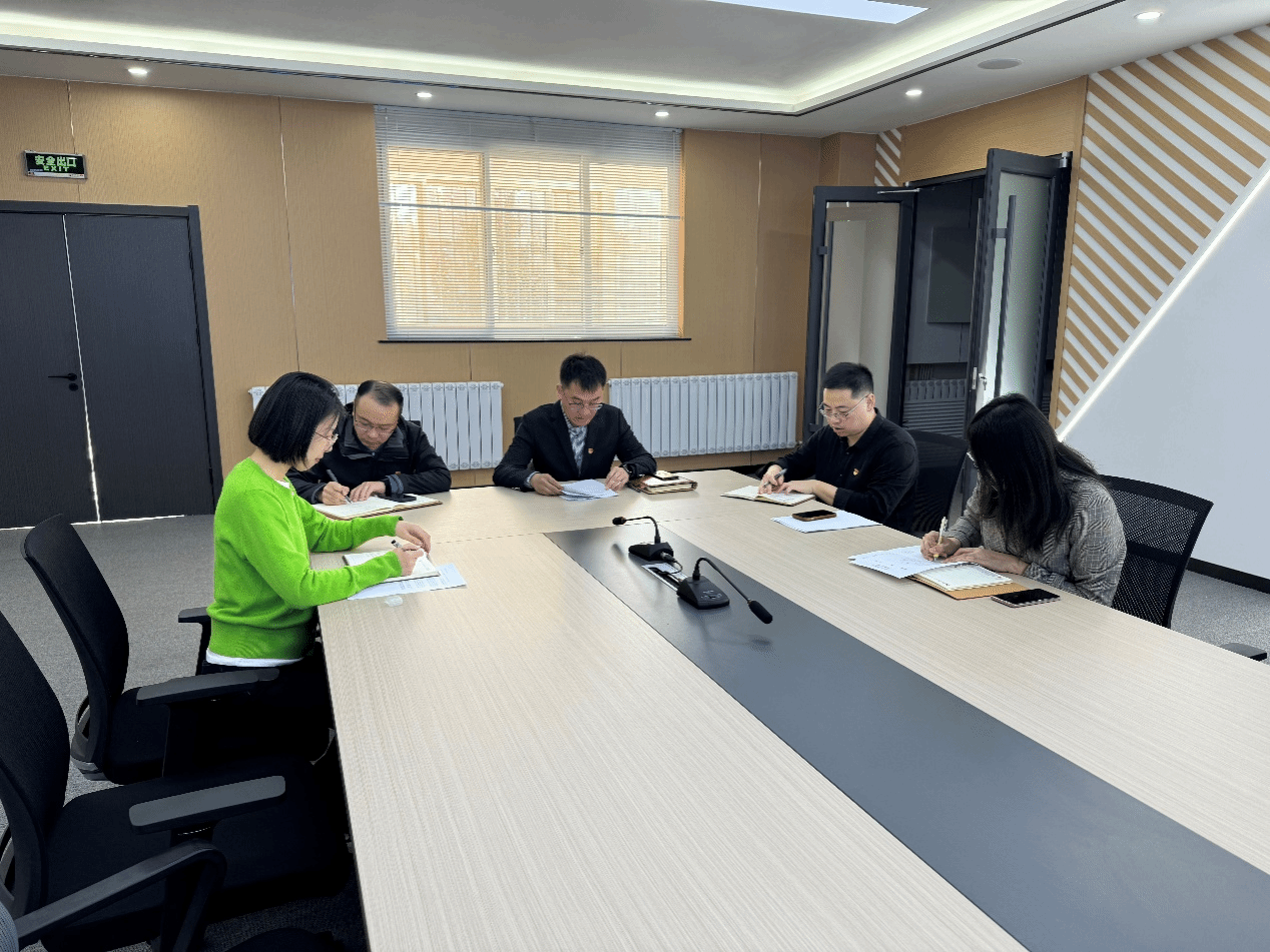 2025年4月23日上午8:40,马克思主义学院党支部在宣传部办公楼一楼会议室召开4月支委会,孙芹宝、姜强、李霖、秦佳丽、于晓芸参会。