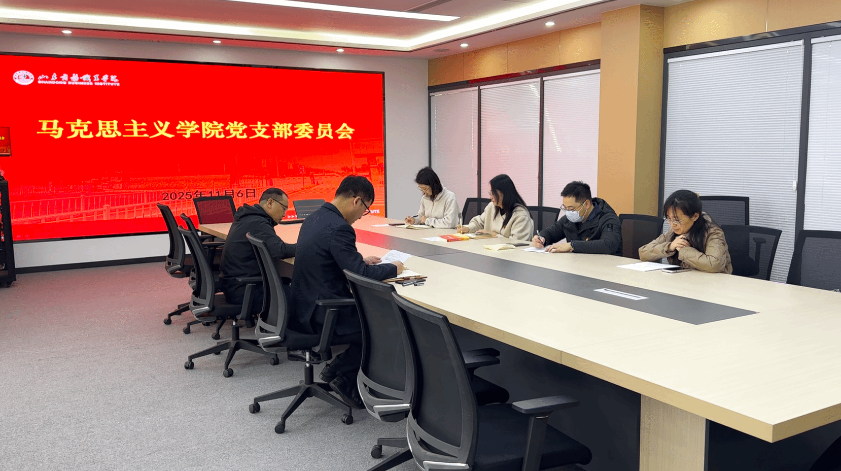 2025年11月6日上午9:30,马克思主义学院党支部在办公楼一楼宣传部会议室召开11月支委会,孙芹宝、姜强、李霖、于晓芸、秦佳丽、鞠明霞参会。